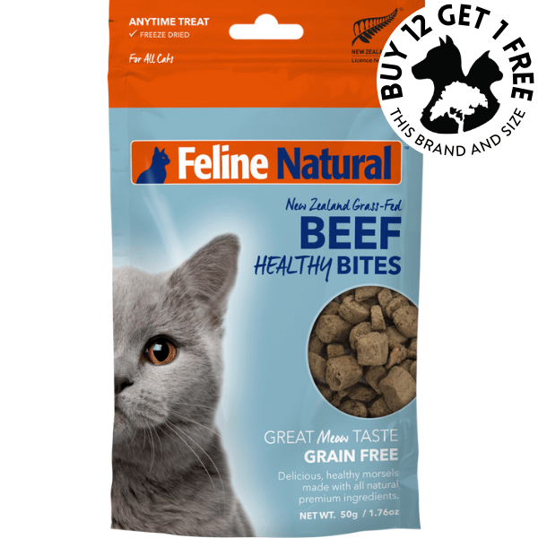 Made from 100% New Zealand grass-fed, free-range beef, these freeze-dried cat treats deliver a natural, guilt-free snacking experience. Beef Healthy Bites are packed with flavor and nutrition, making them a perfect high-protein reward for your cat.