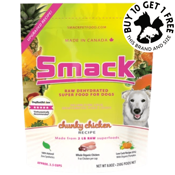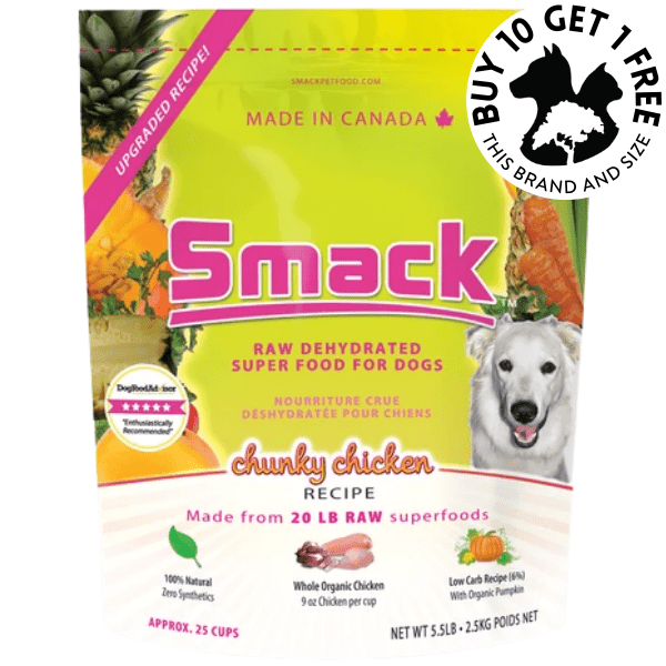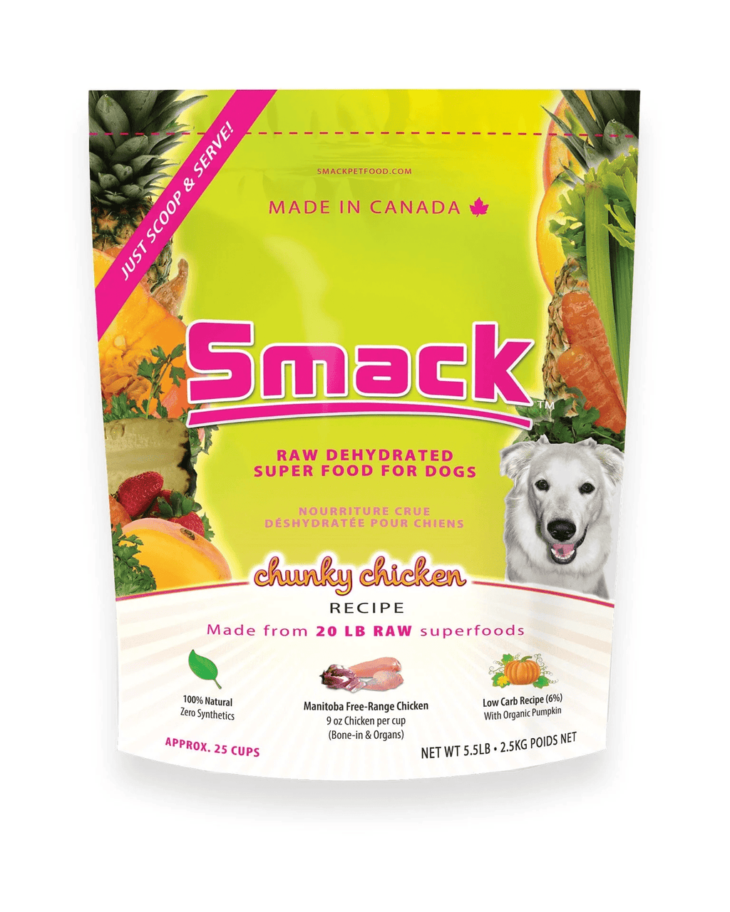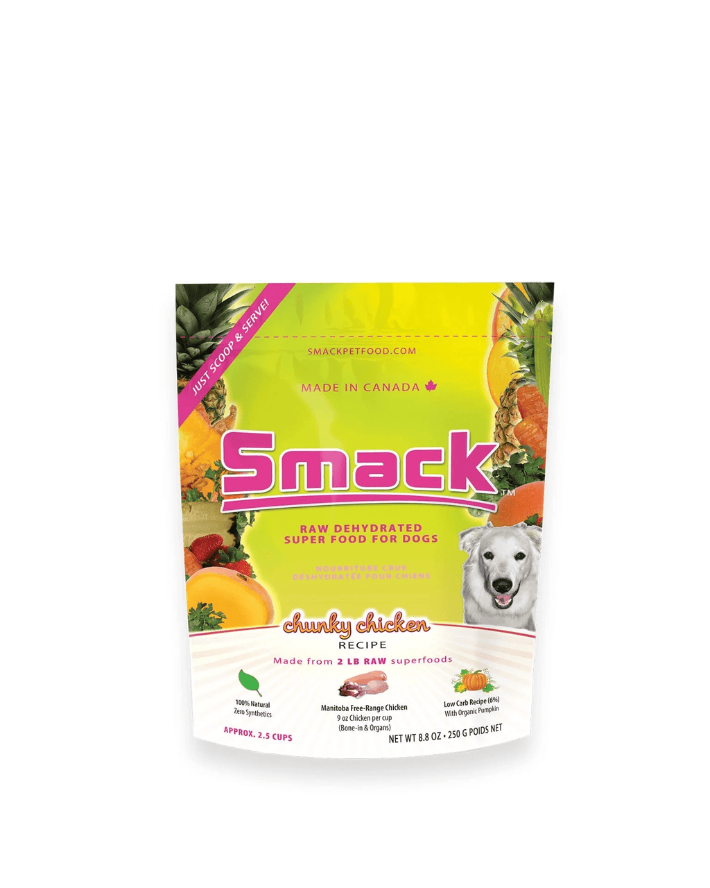 Smack Chunky Chicken Recipe Chunky Chicken Recipe is a raw dehydrated dog food crafted with premium ingredients, designed for optimal nutrition and palatability. Ingredients Ch...